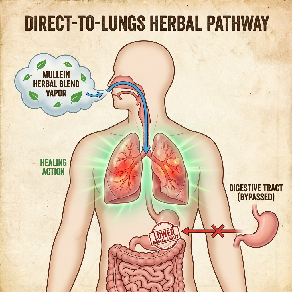 Unlike pills or teas that must pass through the digestive system, Clearway delivers its herbal blend through inhalation, allowing the active compounds to reach the lungs more directly and efficiently.